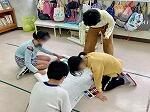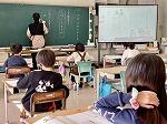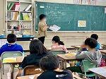 2年1組は100cmを超える長さを図る学習をしていて、竹製の1mものさしの目盛の読み方等を確認した後、両手を伸ばした長さを測っていました。2組は国語「おにごっこ」の導入として、知っているおにごっこ遊び等を出し合いながら、興味を持って学習に取り組めるように工夫しながら内容を確認していました。