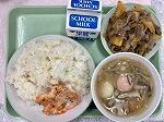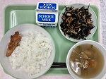 今日の給食は、冬瓜汁、ひじき炒め、鶏の味噌ケチャ焼き、ごはん、牛乳でした。
