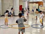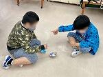 2校時の休み時間に1年生のワークスペースを通ると、子ども達が楽しそうにフラフープを楽しんでいました。体を前後に動かし上手にフラフープを回していました。