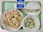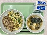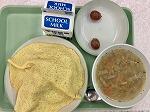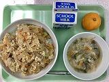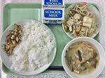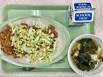 今日の給食の献立は、タコライス、小松菜のすまし汁、牛乳でした。