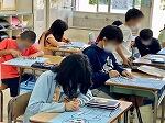 4年1組は算数のテスト後に、総合的な学習で書いている好きな国の魅力を紹介する新聞に取り組むなど、各自がまだ終わっていない課題に取り組んでいました。2組は理科で空気、水、金属を温めたときの体積変化について、単元のまとめとふり返りをしていました。