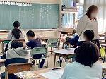 5年1組は単語の発音を聞いて単語の頭文字を書くなどしてアルファベットの復習に取り組んでいました。2組は国語「よりよい学校生活のために」ということで、グループで曙小学校をさらに良くするために何が必要なのか話し合っていました。