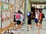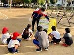 今日は3年生が社会科の勉強で校内にある消防設備装置について調べていました。「これは穴があいていないから熱探知機」とか、1つずつグループの友だちと確認しながら校舎内を調べ歩いていました。
