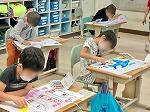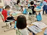 1年1組は手づくりごまを作ろうということで、色鉛筆を使って自分だけのオリジナルごまの型紙を作り、ハサミとのりを使って組み立てていました。2組は国語「動物の赤ちゃん」を繰り返し音読しながら本文の中に出てくる赤ちゃんの大きさなどを確認していました。
