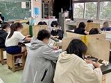 6年1組は木版画に取り組んでいました。細かいところまで注意しながら丁寧に彫り進めていました。2組は算数のテスト終了後に各々が終わっていない課題を進めていました。6年生は修学旅行から休む間もなくふれあい祭り、学習発表会準備と大忙しですが、子ども達はスキマの時間を上手に使い頑張っています。