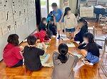 5年1組は算数で円グラフから割合を読み取り、「総生産量の何%が〇〇県だから」と考え、都道府県別みかんの生産量を求めていました。2組は英語で「go straight]」「turn right (left)」「in front of」「next to」「between A and B」などのフレーズを使って道案内を楽しんでいました。