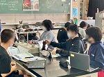 6年1組は明治時代に描かれた風刺画から、当時の日本と世界の関係を読み取る活動をしていました。2組はミシンを使ってエプロンづくりに励んでいました。新型コロナ感染症が収まり、製作したエプロンを使って調理実習ができる日が1日でも早く来てほしいものです。
