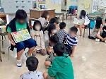 今日の朝から3校時にかけて、こども園の園児らが学校図書館を利用して絵本や紙芝居等を楽しんでいました。来年新1年生として入学してくるのが楽しみです。