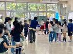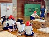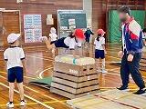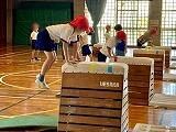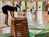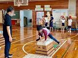 3年1組は「What's this ?」「Hint, please.」「It's ~ .」「That's right .」などのフレーズを使い箱の中にあるものが何なのかを当てるゲームを楽しんでいました。2組は体育館で跳び箱運動に取り組んでいました。分散登校で人が少ないからこそたくさん練習ができるので、是非この期間に苦手な児童には克服して欲しいと思います。