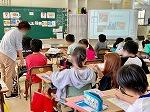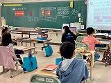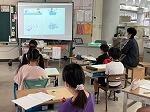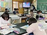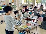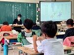 3年1組は算数「何倍でしょう」「順序よく考えて」の学習内容の復習に取り組んでいました。2組は英語でアルファベットに慣れようということで、教科書の挿絵の中に隠れているアルファベットを探すゲームに取り組んでいました。