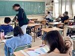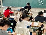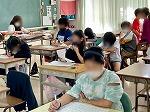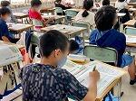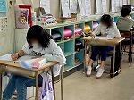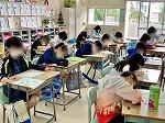 4年1組はこれまでの学習してきた内容を思い返しながら「月や星の見え方」のテストに取り組んでいました。2組はこれまで4年生で学んできた算数の内容が定着できているかを確かめていました。