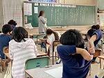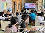 6年1組は図形の拡大と縮小についての学習で、電子黒板に提示した本校の運動場の大きさが実際の何分の1の縮図になっているのかを確かめるために、メジャー片手に運動場の実測をしていました。2組は、漢字を学習する秘伝を知ろうということで、「複雑な形や見慣れない形の漢字」「複数の音訓を持つ漢字」等の覚え方を例示しながら確認していました。