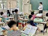 3年1組は数直線を使ったり、0.1が何個あるか考えたりしながら、小数のひき算の計算に取り組んでいました。2組は、1枚の絵から想像して書いた自分だけの物語を友だちと読みあい、感想を伝え合う活動をしていました。