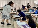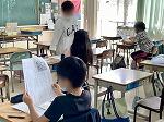 5年1組は国語で教材文「想像力のスイッチを入れよう」を読んで、文章構成をつかみ、筆者の主張をまとめる活動に取り組んでいました。2組は割合のテストに取り組んでいました。別紙の計算用紙を活用して何度もたしかめを行っていました。