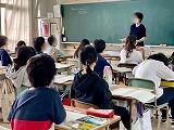 6年1組は国語「狂言・柿山伏」のグループ発表会をしていて、台詞に併せて独自の動きで内容を表現していました。2組は社会で寺子屋など、江戸・明治時代の教育について学習していて、「寺子屋と学校、通うならどっち?」ということで、活発に意見を交流していました。