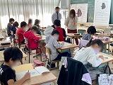 5校時に学校を代表して1年2組さんが国語の授業を行いました。子ども達は自動車の「しごと」「つくり」ぴったんこゲームを通して説明の順序について考えていました。授業後は、琉球大学の上江洲教授から今後の授業改善につながるたくさんの助言を頂きました。