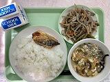 今日の給食の献立は、小松菜のきんぴら、秋刀魚の梅煮、里芋のみそ汁、ごはん、牛乳でした。