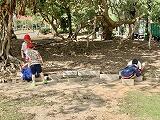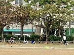 分散登校ではない日に保護者の仕事の関係で預かりを行っておりますが、子ども達はタブレットを使って学習したり、運動場で動いたりしながら毎日時間をすごしています。今日は運動場の落ち葉拾いをしてくれていました。