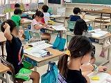 3年1組は国語「ありの行列」で段落どうしのつながりに気をつけて読み、ウイルソンの研究についてまとめていました。2組はパフのリコーダー演奏に取り組んでいましたが、通常登校になり人数が増えたことで音の厚みが増し、とても迫力がありました。