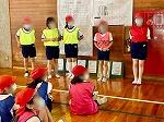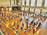 分散登校明けの運動不足を解消するために、体育専科教諭が体育館に発達段階に応じた体ほぐし運動の様々な動きを示した掲示物を準備しています。学力向上はもちろんですが、本校では体力向上(特に持久力)にも力を入れ、粘り強く取り組むことのできる児童を育てていきたいと考えています。