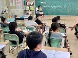 3年生は学習発表会に向けての練習をしていました。ビックリしたのが、すぐに練習を始められるようにと休み時間を活用して楽器の準備を進めていたことです。演奏に意欲的な3年生、練習では息の合った素晴らしい音色を奏でていました。