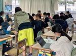 6年1組は音楽で「ふるさと」をどの楽器を使って合奏するのか、誰がどのパートをやるのかなどグループで話し合っていました。2組は理科で地層の学習のまとめとしてタブレットを使い調べ学習をしていました。