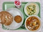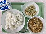 今日の給食の献立は、マーボー白菜、棒々鶏ーサラダ、麦ごはん、牛乳でした。分散登校の関係で、配布済みの献立表のメニューから変更になっていますのでご了承ください。明日も同じメニューになります。