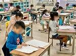 2年1組は体育でコーンを上手に避けながらくねくね走り、地面におかれたリングを拾いかかったタイムと拾ったリングの数を競い合うゲームを楽しんでいました。2組は算数でかけ算の単元テストに取り組んでいました。かけ算は算数の基礎となるものなので、しっかりと定着が図れるようご家庭でも暗唱テストに取り組んでもらえると助かります。