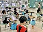 5年1組は社会で放送局がどのような考えでニュースを選択しているのかを考えていました。2組は体育でキックベースボールに取り組んでいました。久々に体を動かすのかとても楽しそうでした。