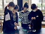 6年1組は電熱線に電流を流すと発熱するのかを実験を通して調べていました。2組は算数で何通りあるのかを考える学習で4枚のカードの並び方が全部で何通りあるのか樹形図を使って確認していました。