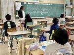 4年1組は水や空気を温めたり、冷やしたりしたときの体積の変化について実験結果をもとにまとめていました。2組は算数で2つの項目を表に表す学習に取り組んでいて、書く際の注意点などを確認していました。