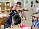 2年1組は学級活動「友だちと仲よくなるには」というグループ活動に取り組んでいて、引いたカードの状況に合った言葉かけをするゲームをしていました。2組は7の段のかけ算にチャレンジしていました。かけ算の習得は算数を学習していく上で必要不可欠なので、是非ご家庭でもかけ算九九テストをしていただけないでしょうか。