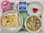 今日の給食の献立は、大根のポトフ、かぼちゃサラダ、メープルトースト、牛乳でした。