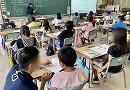 5年1組は社会科で「ふだん食べているお米がどのようにして私たちの元に届けられるのか」について、考えを出し合いながら確認していました。2組は四角形の内角の和が360度になることを利用して、四角形のわかっていない角度を求めていました。5年生に今日はインターンシップの沖縄大学の学生さんが来てくれていて、児童に寄り添いながら学習支援をしてくれていました。