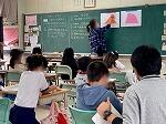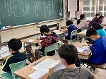 3年1組は故事成語・ことわざ辞典作りの準備をしていて、辞典の基本的な約束事を確認していました。2組は英語活動でアルファベットの学習に取り組んでいて、自分の名前や友達の名前の頭文字のイニシャルなどを書く活動を楽しんでいました。