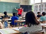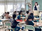 3年1組は運動場で高学年からのバスケットにつながるシュートゲームをチームのメンバーと協力しながら取り組んでいました。2組は社会科で暮らしの変化を道具の移り変わりと関連させながら年表にまとめる作業をしていました。