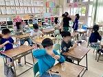 2年1組は国語の授業前に工夫されたワークシートを使って楽しみながら漢字の練習に取り組んでいました。2組は図工でスライム作りにチャレンジしていて、色とりどりの綺麗なスライムをつくっていました。