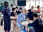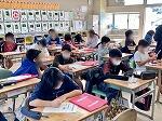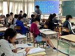 4年1組は理科「自然の中の水の姿」のテストをしていて、終了後は顕微鏡を使って塩やミョウバンの結晶を覗いていました。2組は算数「小数のかけ算やわり算/図を使って考えよう」のテストをしていました。これまでの学習の成果をしっかりと発揮していました。