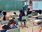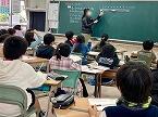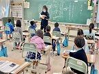 1年1組は国語で「1字増やして言葉を変身させよう」という学習に取り組んでいて、言葉遊びを楽しみながら、自分が考えた言葉の発表をしていました。2組は新出漢字を使った短文を発表したり、書くときの注意点を確認したりしながら漢字練習に取り組んでいました。
