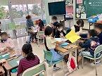 2年1組は算数で両手を広げたときの長さを工夫して測る活動に取り組んでいました。2組は今月末に1年生を招いてのおもちゃフェスティバルに向けたおもちゃ作りにグループで取り組んでいました。