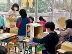 2年1組は体育館で跳び箱遊びに取り組んでいました。子ども達同士で上手に跳ぶにはどうしたらいいのか、恐怖心をなくすには等、アドバイスしあう場を持ちながら練習に励んでいました。2組は来週予定されているおもちゃフェスティバルで使うおもちゃの完成を目指してグループで創作活動に取り組んでいました。