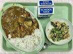 今日の給食の献立は、ふ野菜カレー、たくわん和え、むぎごはん、牛乳でした。