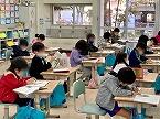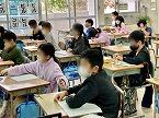 1年1組は新しい漢字ドリルをもらい漢字の練習に取り組んでいました。2組はこれまで学習してきた計算のたしかめ問題にチャレンジしていました。