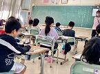 5年1組は跳び箱運動に取り組む前に主運動につながる運動をペアで協力しながら取り組んでいました。2組は「貿易を支える港と輸送手段」についてNHK for schoolのデジタル教材も活用しながら学習内容を確認していました。