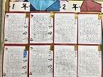 今日の1・2校時に校内書き初め大会があり、宮城道雄の「春の海」の曲をバックに低学年は硬筆、中・高学年は書き初めにチャレンジしていました。
