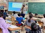 5年1組は「Where's the park ?」という質問に対して地図を見ながら場所を伝える活動をしていました。2組は水に溶けた食塩、ミョウバンを取り出すにはどうしたらいいか考察していました。