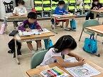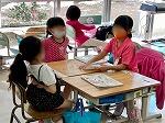 1年生は来週水曜日の新1年生のお招き会に向け、飾り付けやプレゼントするメダル作りに励んでいました。真剣な表情で丁寧に仕上げていました。
