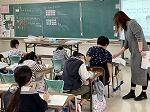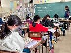 4年1組は跳び箱運動に取り組んでいました。飛び終わった後は、マット等のズレがないか安全確認を行い、次の人に合図を出すなど、安全面に十分配慮しながら様々な場で跳躍にチャレンジしていました。2組は算数「変わり方」のテストをする前の確認プリントに取り組んでいて、できた児童は担任にチェックをしてもらっていました。