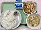 今日の給食の献立は、ホイコーロー、シュウマイ、中華スープ、ごはん、牛乳でした。
