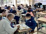 2年1組は「こぐまの2月」を2つのパートに分け、担任の先生の伴奏に合わせて楽しく鍵盤ハーモニカを演奏していました。2組は国語科の「すてきなところをつたえよう」の単元の学習に取り組んでいて、友達の良いところを伝えるための手紙を書いていました。